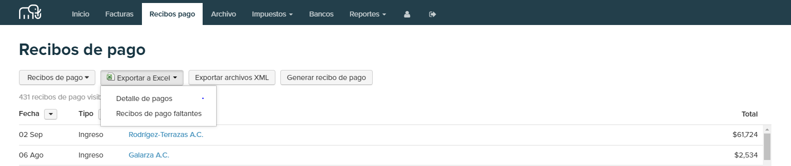 Para que no te quedes sin acreditar el IVA, desarrollamos un reporte en el cual, te podrás enterar de manera rápida a qué facturas les hace falta que le emitan su recibo de pago y el cuál lo puedes descargar desde la sección exportar a excel.
